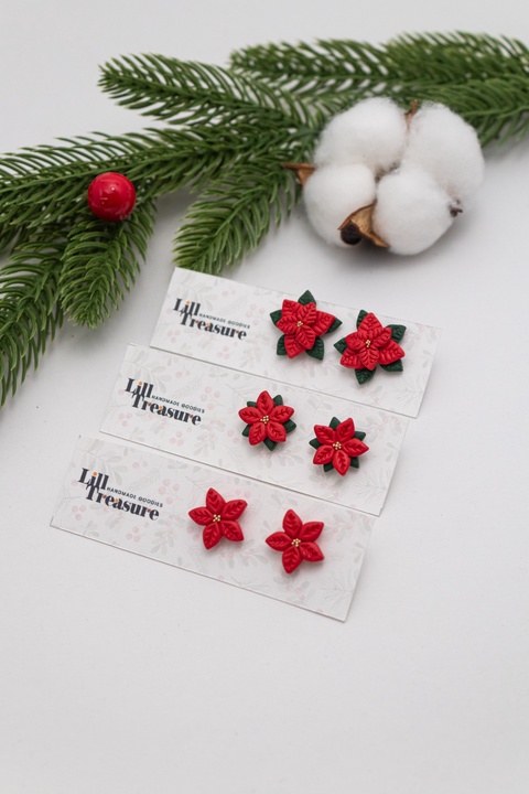 Cercei Craciunita cu detalii aurii - Poinsettia