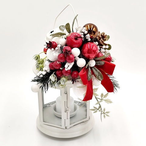 - Material: floare, globuri, ramuri de brad, felinar, candela led, conuri de brad