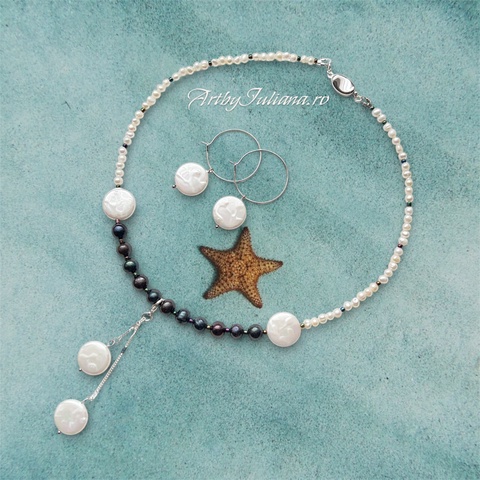 Set (colier, cercei) perle de cultură "Lavă pe țărm"
