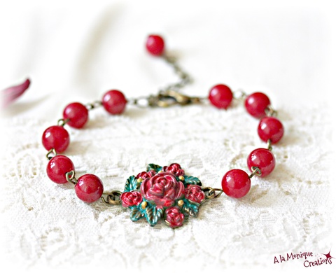 metal culoare bronz, perle tip mallorca, patina de oxidare
