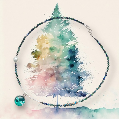 Colier handmade cu argint, perle si pietre semiprețioase "Brad de Crăciun"