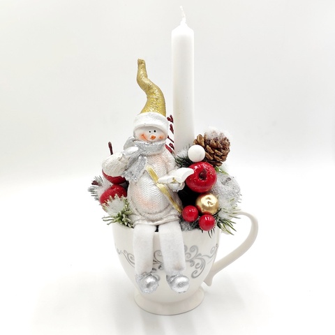 crengute verzi, mos craciun, lumanare, ceasca ceramica, om de zapada, globuri