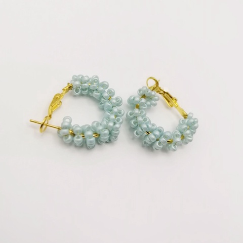 Cercei rotunzi aurii cu pietre albastre, cu plic din piele alb