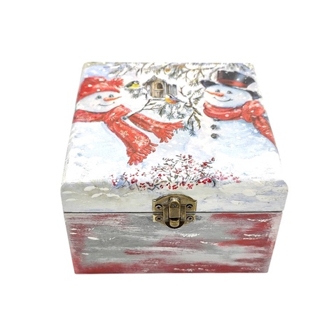 Cutie lemn decor Craciun cu oameni de zapada, 4555
