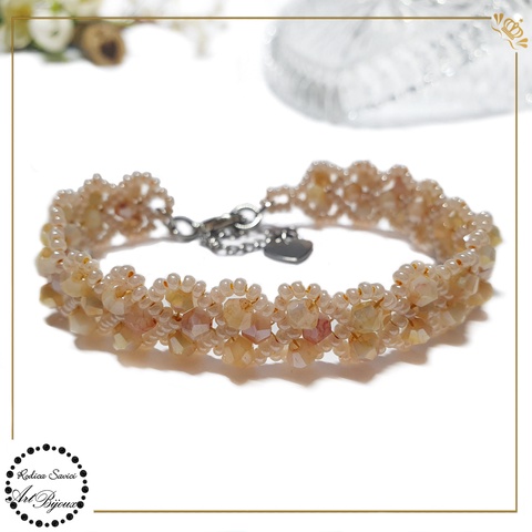 BRĂȚARĂ cu INIMIOARE din cristale - somon