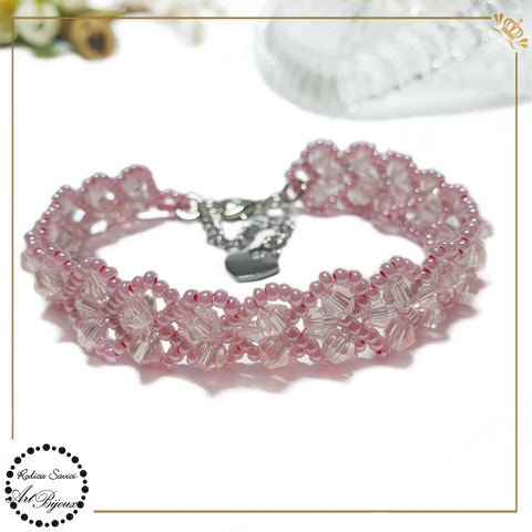 BRĂȚARĂ cu INIMIOARE din cristale - roz