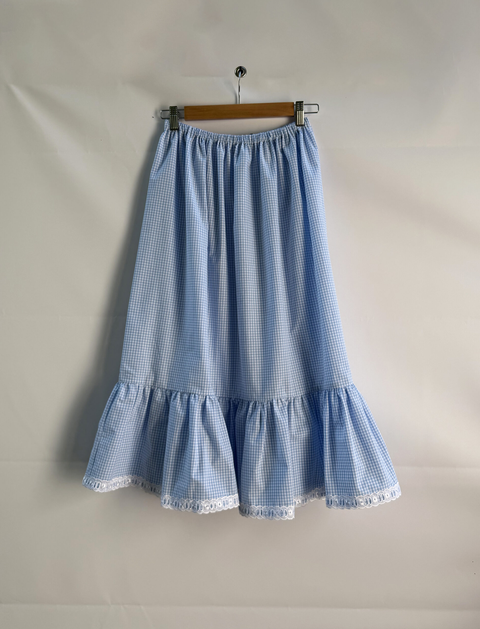 Fustă albastră cu carouri și volan (Doar la comandă)