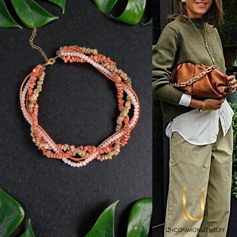 Colier cu pietre semipretioase Piatra Soarelui, Unakite, cristale si margele Toho