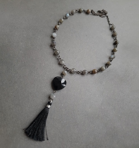 Colier negru Colier lung rozariu colier pietre pretioase colier labradorit onix colier pietre semipretioase gri negre