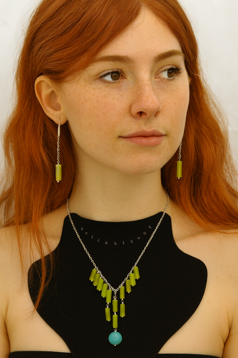 Set Bijuterii cu Jad si Angelit Lucrat Manual Oțel Inoxidabil (cod1352)