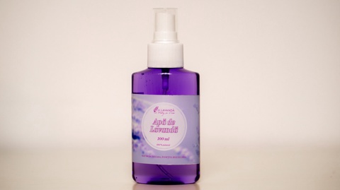 - Material: flori de lavanda, apa pura, recipient din plastic