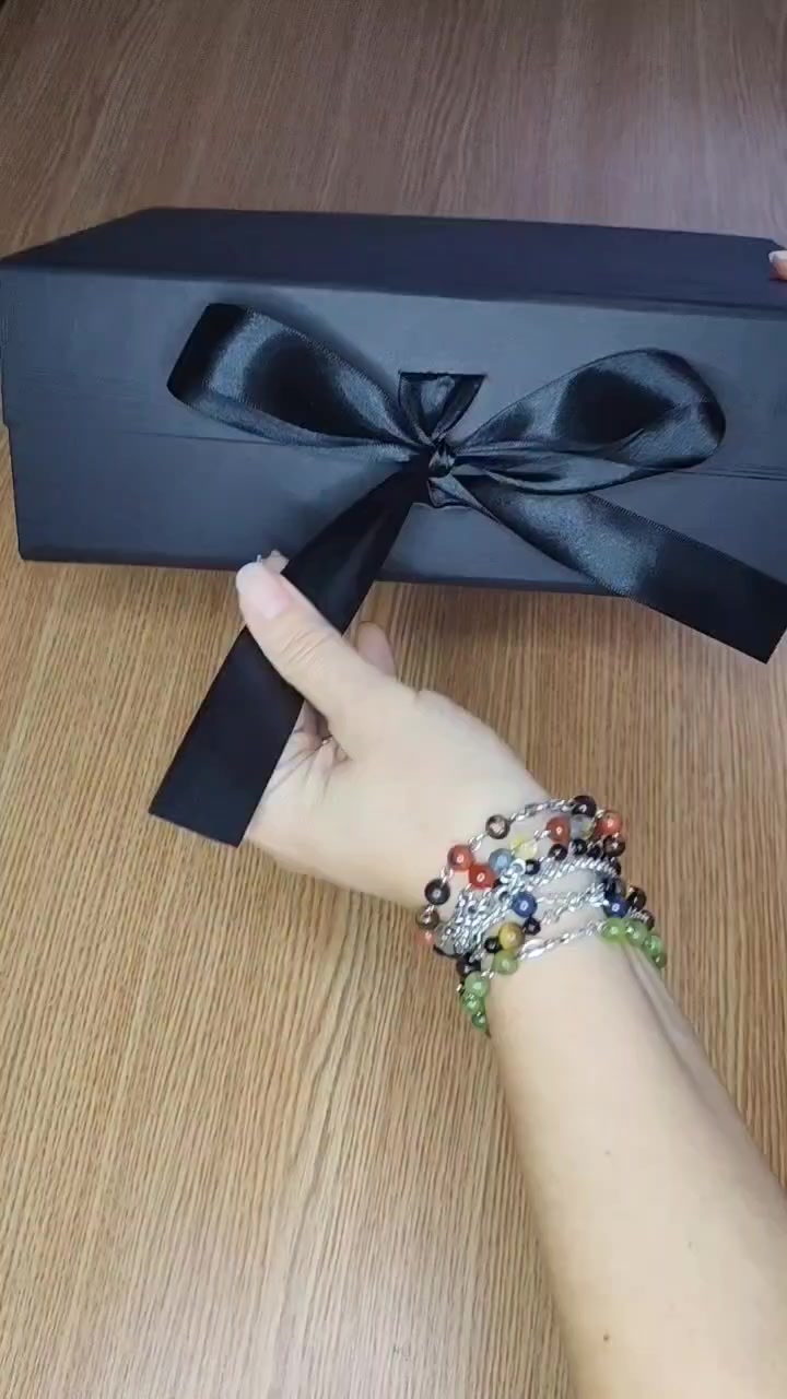 carton rigid, hârtie neagra, magnet, panglica satinata