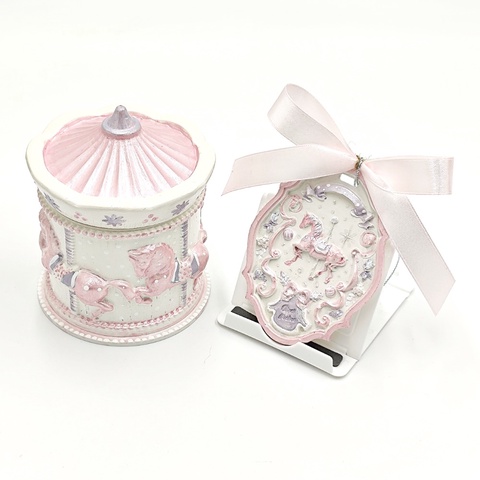 Set decorativ de Craciun pictat manual, carusel alb roz perlat, 4559