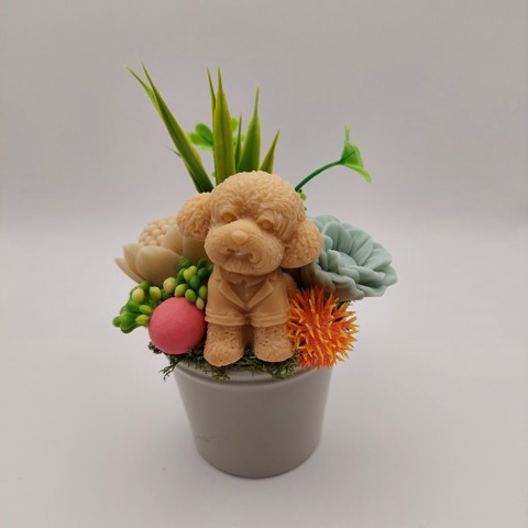 - Material: săpunieră, coloranți pentru săpun, ulei parfumat, băț de lemn, sârmă metalică, spumă de cusut flori, lipici, plante artificiale