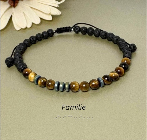 Bratara cod morse barbati din ochi de tigru, hematit si lava vulcanica