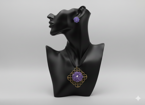 bijuterii, seturi de bijuterii, fimo, polymerclay, lutpolimeric, monybijoux, handmade, flori, auriu, sclipici, femeie, ocazii, cadou, set, trandafiri, albastru