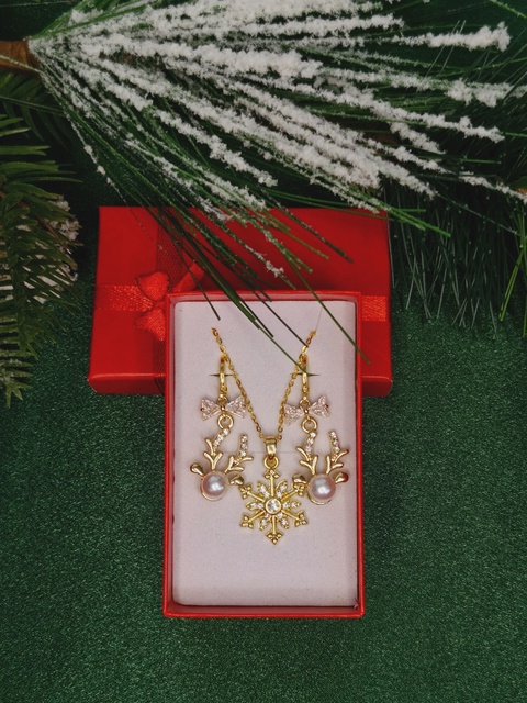 Set placat cu aur de 18K cu reni și fundițe de zirconiu