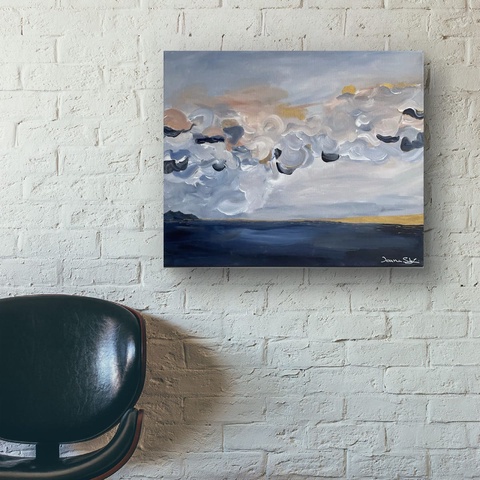 Peisaj cu Nouri, Peisaj maritim, Pictura originala acrilice pe panza Tablou pictat manual, Unic