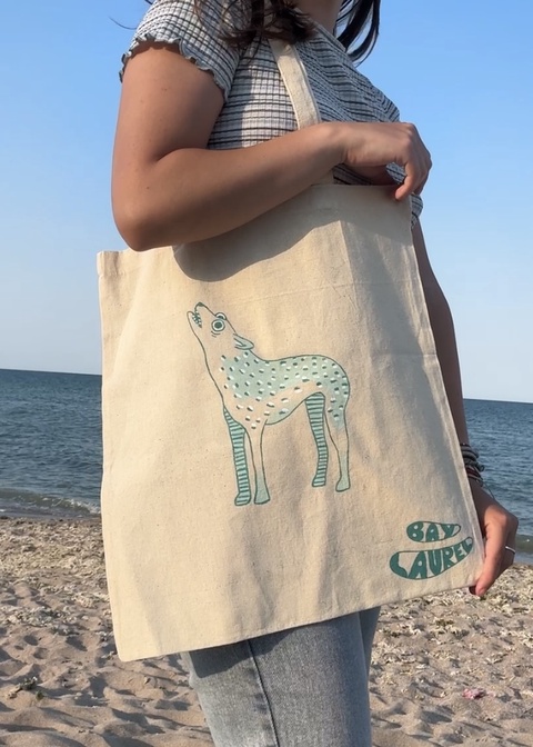 Geanta totebag cu lup pictata manual