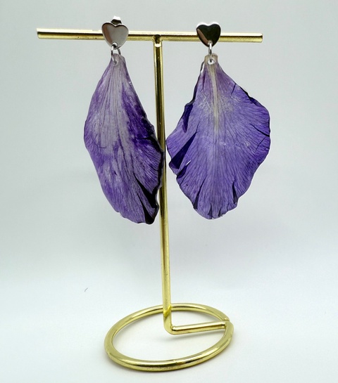 Cercei handmade cu petale de gladiolă mov – flori naturale