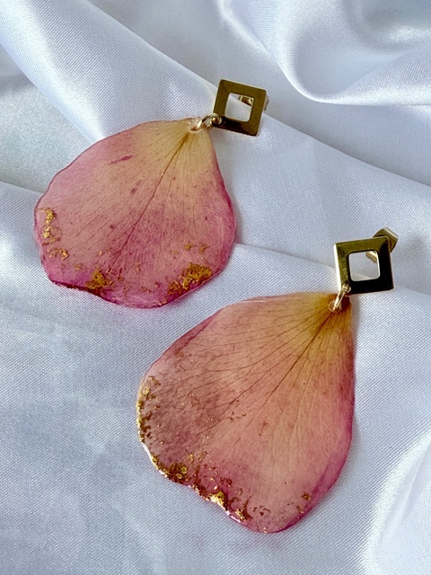 Cercei petale de trandafir roz si rasina