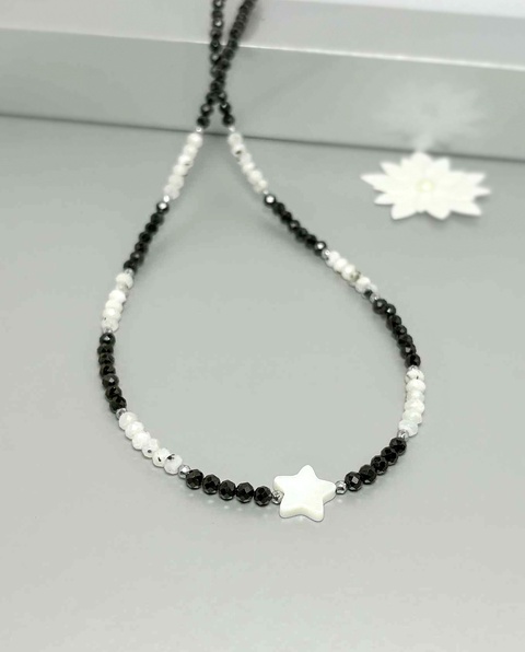 Colier turmalina neagra, piatra lunii si sidef / MoonStar