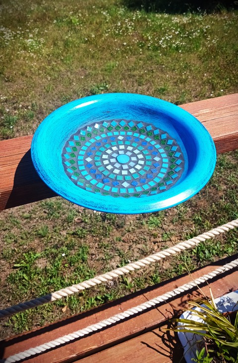 REKREDENC - hrănitor pentru păsări din mozaic realizat manual - poate fi montat pe balustradă (42)