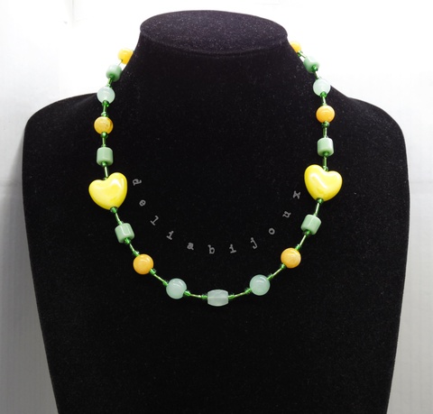 Colier handmade cu mărgele galbene și accente verzi model unicat (cod1239)