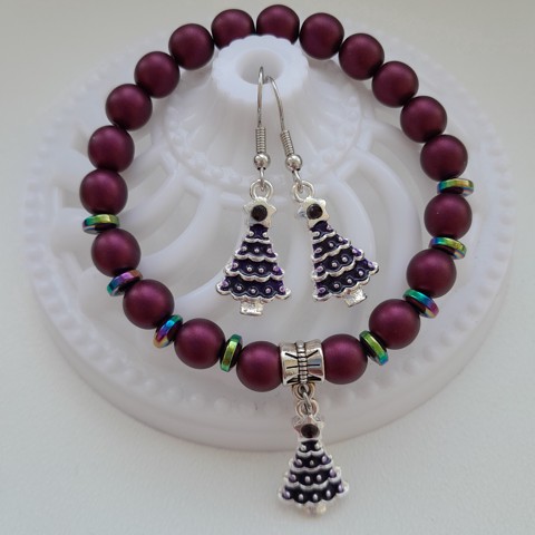 Set de bijuterii cu brad de Crăciun - brățară, cercei
