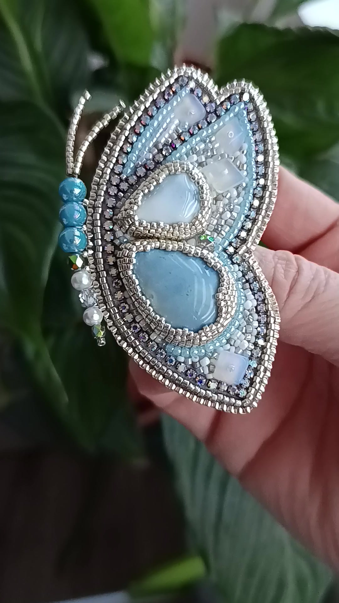 margele, piele, ac brosa, perle, cristale, opal albastru, opalit, miyuki