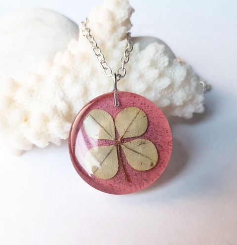 - Material: otel inoxidabil, rasina, flori naturale, trifoi cu patru foi natural