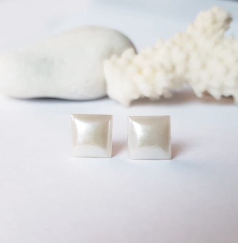 Cercei albi cercei perlati cercei cu tija cercei lobul urechii cercei minimali cercei geometrici patrati cadou craciun