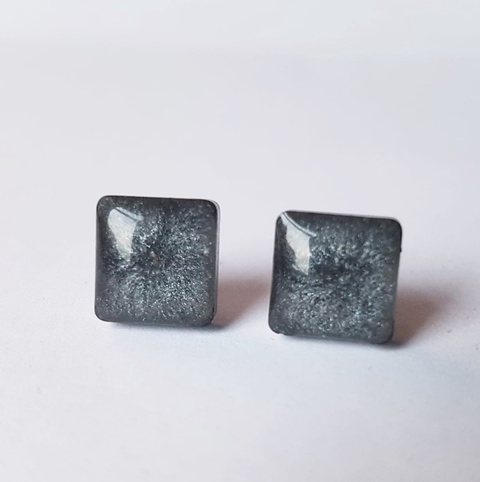 Cercei patrati din rasina cu pigmenti de culoare argintie