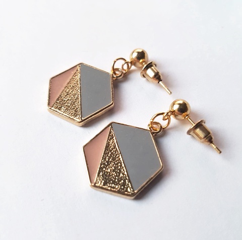 Cercei moderni geometrici cercei aurii hexagonali, cercei drop cercei atarnatori cu tija, bijuterie contemporana cadou