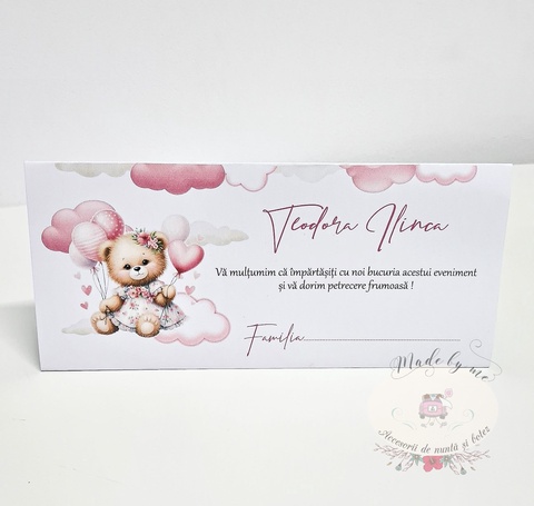 Plic de bani ursulet roz