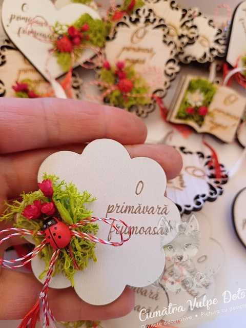 Mărțișor - tip broșă - cu licheni și flori criogenate