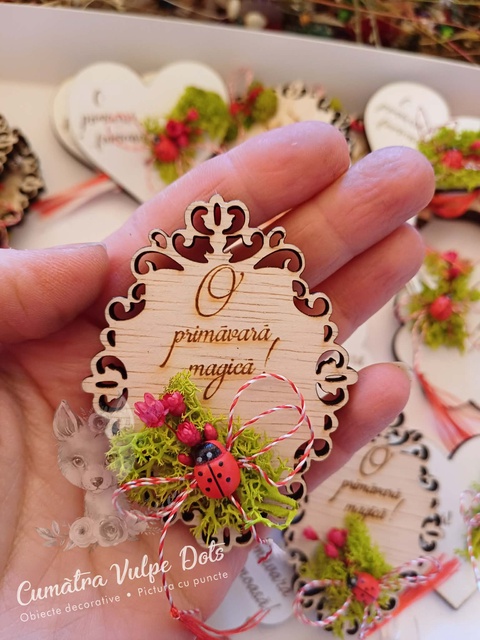 Mărțișor - tip broșă - cu licheni și flori criogenate