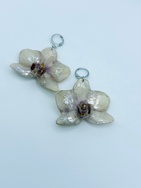 Cercei handmade cu flori reale de orhidee – creație unicat