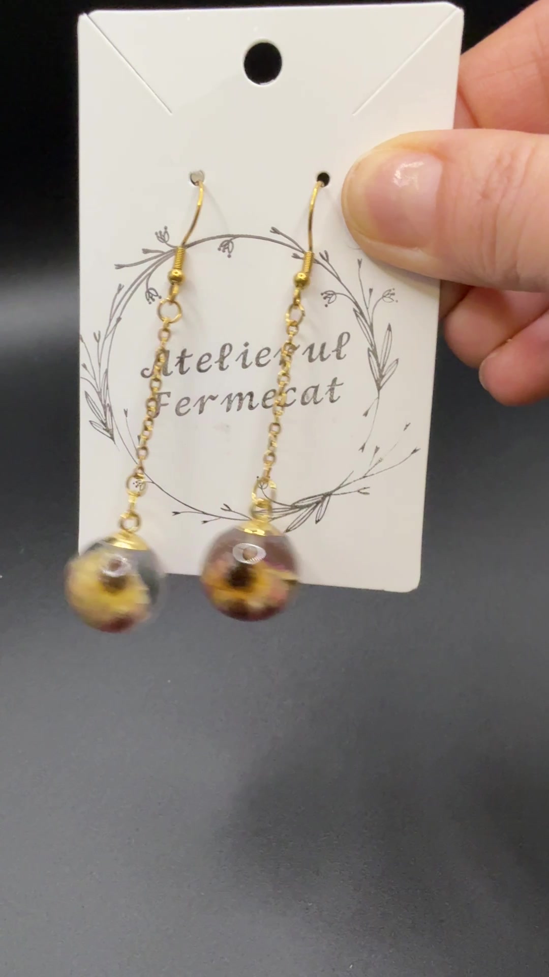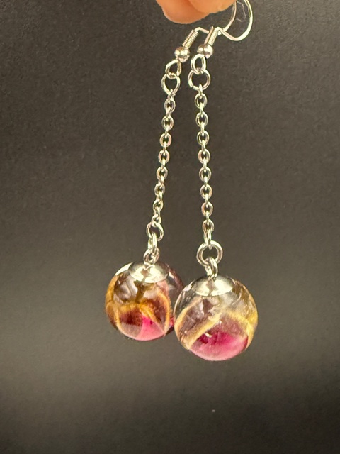 Cercei unicat cu boboc de trandafir real, conservați în rășină