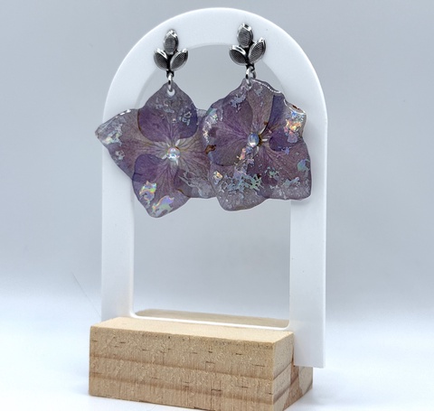 Cercei handmade din flori naturale de hortensie – lucrat manual