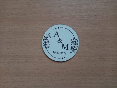 Set de 5 marturii gravate, personalizate cu initialele mirilor si data nuntii. Diametru 9 cm