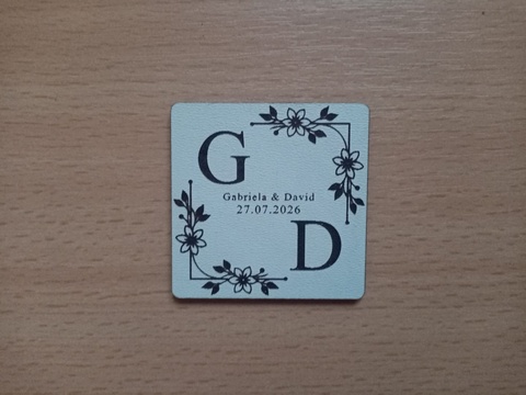 Set de 5 marturii gravate, personalizate cu initialele, numele mirilor si data nuntii. 9x9 cm
