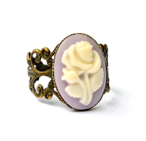 Inel camee inel reglabil cu filigran inel ajustabil mov crem inel vintage cadou pentru fiica bijuterie cadou valentine
