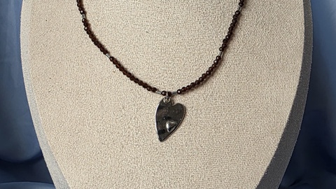 Colier din mărgele maro și pandantiv inimă din oțel inoxidabil