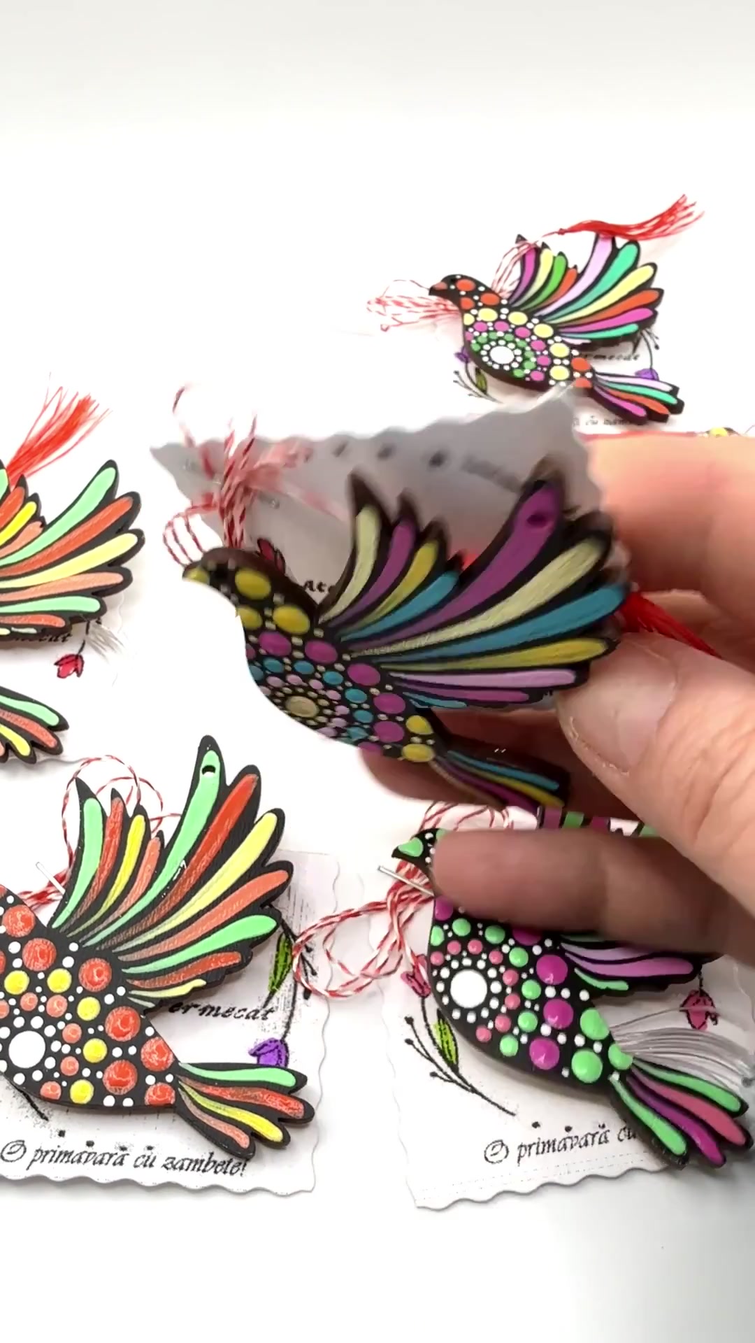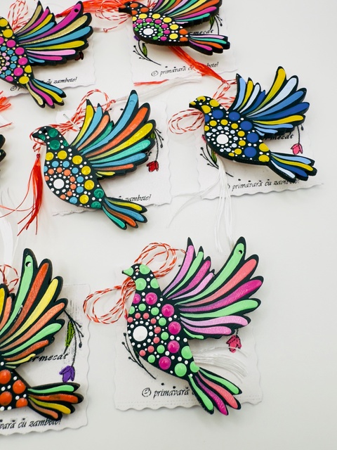 - Material: lemn, vopsea acrilica, lac lucios, snur martisor, ambalaj individual