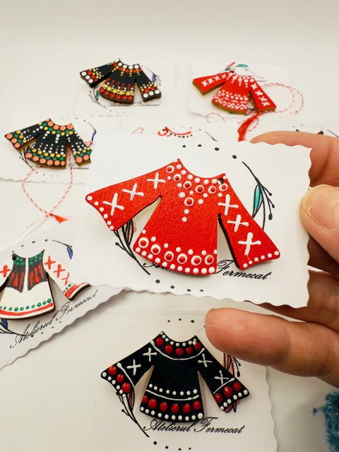 Mărțișor broșă ie tradițională pictată manual pe lemn