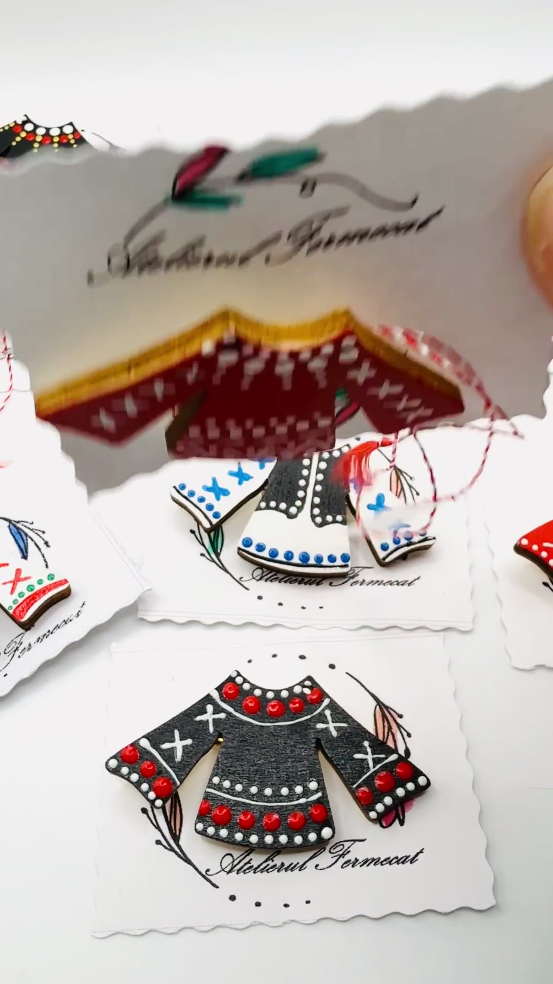 - Material: lemn, vopse acrilica, lac lucios, ambalaj individual, snur martisor