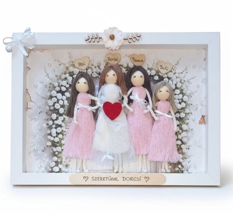 Păpuși personalizate din macramé pentru frați și surori – suvenir de nuntă într-o ramă foto 3D