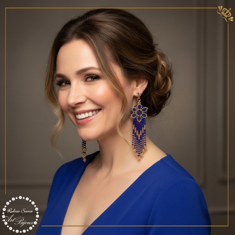 CERCEI CU FLOARE ȘI FRANJURI - albastru cu auriu