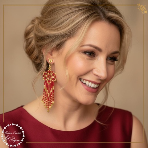 CERCEI CU FLOARE ȘI FRANJURI - roșu cu auriu